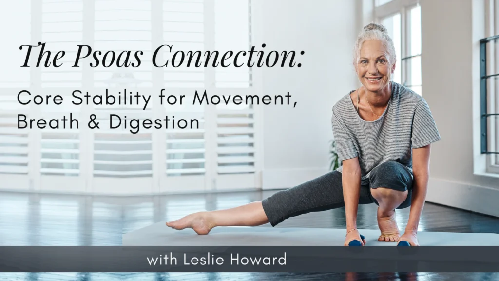 But here’s what makes this especially important: a healthy, balanced psoas supports the kind of effortless movement that keeps you active throughout the day. It enables you to get up and down from the floor with ease, maintain upright posture that supports deep breathing, and preserve the core stability that protects your back while you’re building and maintaining the muscle mass essential for metabolic health. Digestion, breath, core stability, and aging well are not separate conversations — the psoas connects them.